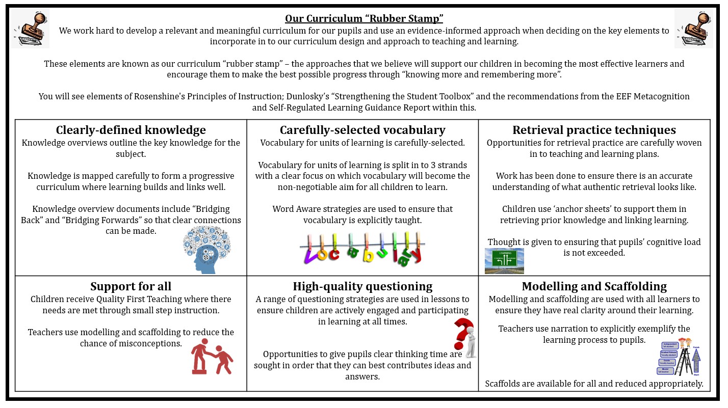 Our "Curriculum Drivers" and our "Curriculum Rubber Stamp" underpin ALL that we do: