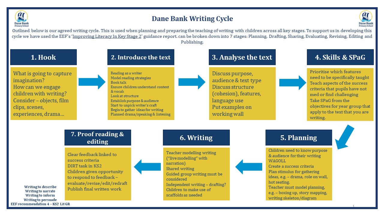 We have created our "Dane Bank Writing Cycle" to give an overview of how a unit of writing is taught from beginning to end.